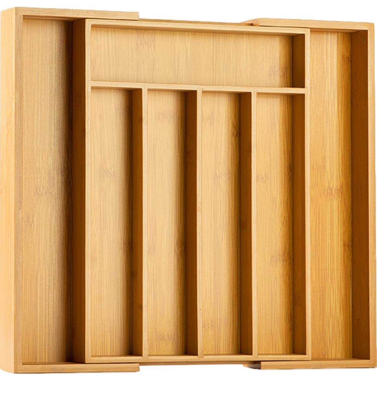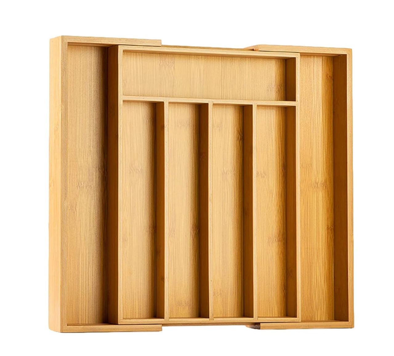 Bamboo cutlery tray for kitchen utensils, drawer organizer